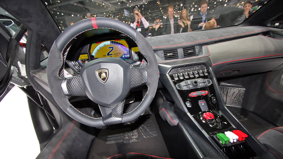 We can say the car was built from the Aventador chassis, and uses a version of the 6.5-litre V-12 linked to a 7-speed automated manual transmission, good for a top speed of 220 mph. The three copies Lamborghini plans to build will have red, white, or green touches to match the Italian flag.